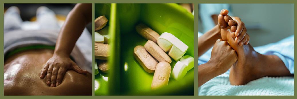 - Padabhyanga (AYURVEDISCHE FUSSMASSAGE) - durch Massieren, Kneten und Streichen entlang der Reflexzonen des Fußes mit warmem Öl werden Blockaden gelöst und der Körper entweder entspannt oder vitalisiert. Erschöpfungszustände, Schlafstörungen und Schmerzen können ausgeglichen und gelindert werden.