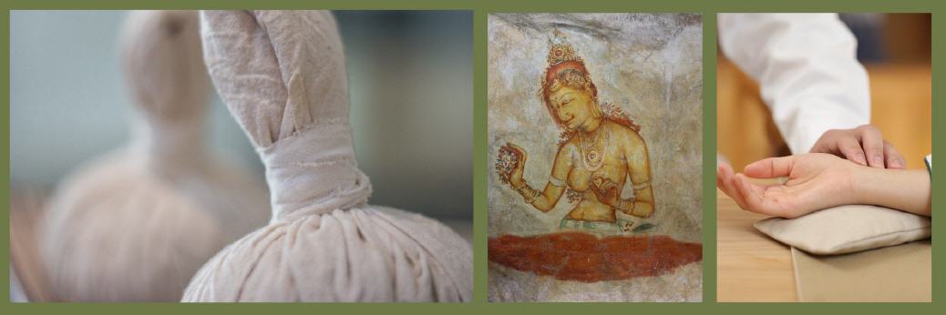 - Pindasweda (MASSAGE MIT WARMEN KRÄUTERSÄCKCHEN) - Teile des Körpers werden mit warmen Kräutersäckchen massiert und dabei zum Schwitzen gebracht. Diese intensive Stimulierung regt die Zellerneuerung an, reduziert Wasseransammlungen und löst Giftstoffe. Die wohltuende Wärme bringt den Körper zur Ruhe und reguliert die Doshas.